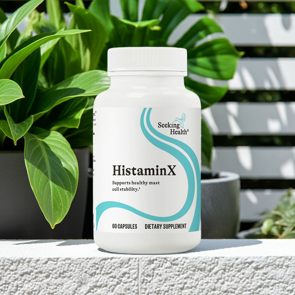 <p>HistaminX di Seeking Health include composti di erbe e piante. La formula include ingredienti come l'estratto di ortica e la quercetina.<br></p>