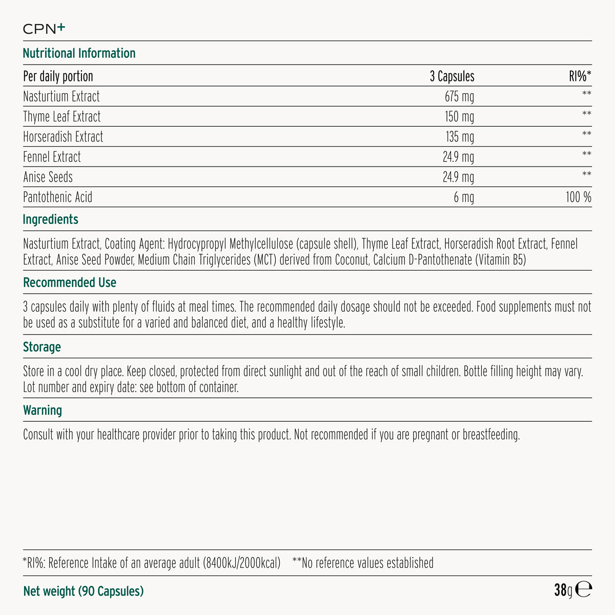 <div><div><span style='letter-spacing: 0px;'>CPN Immune+ veganistisch voedingssupplement is een vitaal onderdeel van MakeWell's innovatieve Herbal Range, ontworpen door Dr. Carsten Nicolaus, de wereldberoemde Lyme-expert en MakeWell's Chief Medical Advisor.</span></div></div><div><br></div><div>CPN Immune+ benut de krachtige synergie van Nasturtium en Mierikswortel en is verrijkt met Vitamine C, Zink en Selenium.</div>