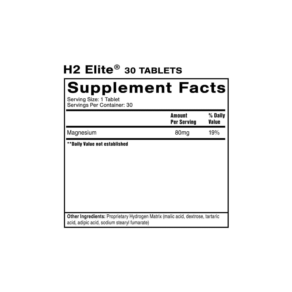 <h2 class=''>H2 Elite® 30 tabletten</h2><h3 class=''>Moleculaire waterstof</h3><div>H2 Elite levert moleculaire waterstof. Deze snel oplossende tablet zorgt voor een verfrissende, licht bruisende drank.</div><div><span style='letter-spacing: 0px;'>Waarom H2 Elite?</span></div><div><br></div><ul><li>Snel oplossend + verfrissend - Handige tabletvorm verandert water snel in een hydraterende drank.</li><li>Magnesium draagt bij tot vermindering van vermoeidheid en uitputting.</li><li>Magnesium draagt bij tot een normale spierfunctie.</li><li>Magnesium speelt een rol in het proces van celdeling.</li><li>Magnesium draagt bij tot een normale psychologische functie</li><li>Magnesium draagt bij tot een normale eiwitsynthese</li><li>Magnesium draagt bij tot het behoud van normale botten en tanden</li><li>Magnesium draagt bij tot een normaal energieleverend metabolisme</li><li>Magnesium draagt bij tot de elektrolytenbalans</li><li>Magnesium draagt bij tot een normale werking van het zenuwstelsel</li></ul><div><b style='letter-spacing: 0px;'><span lang='EN-US' style='font-size: 10pt; font-family: sans-serif; color: rgb(27, 12, 49);'>*Disclaimer:</span></b><span lang='EN-US' style='letter-spacing: 0px; font-size: 10pt; font-family: sans-serif; color: rgb(27, 12, 49);'>Onze supplementen zijn betrouwbaar en geselecteerd door artsen. Wetgevingbeperkt de informatie die we kunnen delen. Raadpleeg voor volledige informatieeen kenniscentrum.</span></div>
