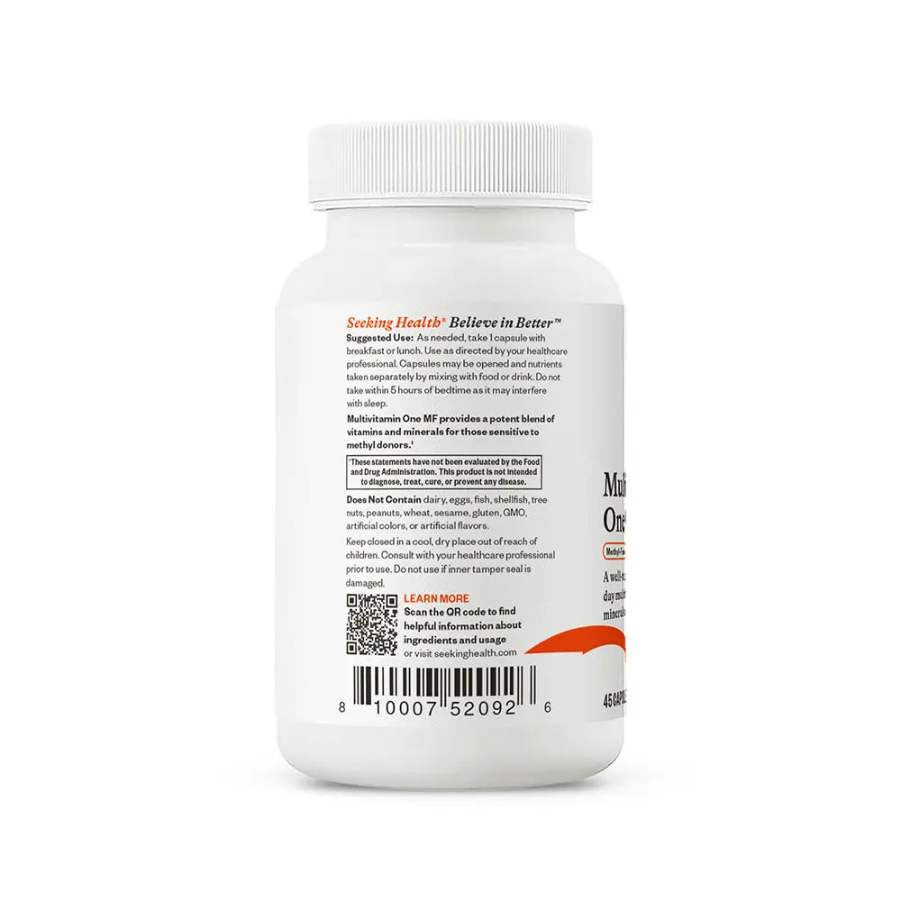 <div><b>Voorheen Optimal Multivitamine Minus One.</b></div><div><br></div><div>Multivitamine One MF bevat alle benodigde vitaminen en mineralen in een gemakkelijk in te nemen capsule.</div><div><br></div><ul><li>Folaat, Selenium, Zink, Vitamine B6, B12, D & A dragen bij tot de normale werking van het immuunsysteem.</li><li>Zink, Selenium, Vitamine B2, E & Mangaan dragen bij aan de bescherming van cellen tegen oxidatieve stress</li><li>Zink, Vitamine A & B2 dragen bij tot een normaal gezichtsvermogen en gezonde ogen</li><li>Bevat actieve B12 als methylcobalamine en actief folaat als methylfolaat</li><li>Biedt PQQ </li><li>Calcium, foliumzuur, vitamine D & B12 spelen een rol in het proces van celdeling en specialisatie</li></ul><div><br></div><div>Multivitamine One MF is een methylvrije multivitamine- en mineralenformule die de vormen van B-vitamines bevat die het lichaam omzet in hun actieve vormen, waardoor ze langzamer worden afgegeven. Dit wordt beter verdragen door mensen die gevoelig zijn voor de gemethyleerde vormen. Een multivitaminesupplement kan zorgen voor de juiste hoeveelheden voedingsstoffen. Deze formule is perfect voor mensen die de voorkeur geven aan een éénmaal daags multivitaminesupplement. Het bevat geen vitamine C, magnesium, calcium of ijzer, zodat je deze individuele voedingsstoffen kunt aanpassen.</div><div><br></div><div><span style='letter-spacing: 0px;'>Meer informatie over dit product</span><br></div><div><br></div><div>Vanwege wetgeving omtrent supplementen mogen we helaas geen (volledige) informatie geven over dit product. Voor meer informatie verwijzen we je naar een kenniscentrum</div>
