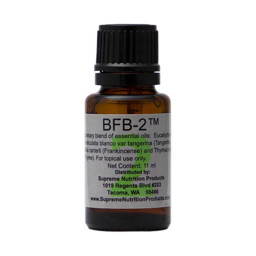 <p class="pf0"><span style="color: rgb(27, 12, 49); font-family: noto-sans, "Noto Sans", Helvetica, Arial, sans-serif; letter-spacing: 0px;">BFB-2 consists of a proprietary blend of the following essential oils: Eucalyptus globules, Citrus reticulata blanco var tangerina, Boswellia carterii, and Thymus vulgaris.</span></p><p class="pf0"><span class="cf0" style="font-family: noto-sans;"><br></span></p><p class="pf0"><span class="cf0" style="font-family: noto-sans;"><b>BFB-1 and BFB-2</b> are two separate essential oils blends. </span></p><ul><li><font face="noto-sans">Boswellin might be supportive for the bone and joints health<span style="white-space:pre"> </span>Health claim ID 2647 pending European approval.</font></li><li><font face="noto-sans">Boswellin might have a beneficial role in musculoskeletal, bone and joints, and might be helpful for enhance effort of bone, joints and muscles<span style="white-space:pre"> </span>Health claim ID 2648 pending European approval.</font></li><li><font face="noto-sans">Boswellin protects digestive tract, is soothing on the intestine and may help maintain the lining of the digestive system<span style="white-space:pre"> </span>Health claim ID 3903 pending European approval.</font></li><li><font face="noto-sans">Boswellin supports the health of the lungs<span style="white-space:pre"> </span>Health claim ID 3905 pending European approval.</font></li><li><font face="noto-sans">Boswellin helps keep joints cool and comfortable.<span style="white-space:pre"> </span>Health claim ID 4000 pending European approval.</font></li><li><font face="noto-sans">Boswellin supports mental function and helps refine mental function.<span style="white-space:pre"> </span>Health claim ID 4001 pending European approval.</font></li><li><font face="noto-sans">Boswellin helps keep blood cholesterol at healthy levels and supports heart function.<span style="white-space:pre"> </span>Health claim ID 4002 pending European approval.</font></li><li><font face="noto-sans">Boswellin supports the health of the gastro-intestinal tract<span style="white-space:pre"> </span>Health claim ID 4003 pending European approval.</font></li><li><font face="noto-sans">Boswellin supports the health of the lungs<span style="white-space:pre"> </span>Health claim ID 4004 pending European approval.</font></li><li><font face="noto-sans">Boswellin supports menstrual health and male sexual health<span style="white-space:pre"> </span>Health claim ID 4005 pending European approval.</font></li><li><font face="noto-sans">Thyme contributes to wellbeing of chest, throat and a fresh breath and is soothing for troat and chest<span style="white-space:pre"> </span>Health claim ID 2149 pending European approval.</font></li><li><font face="noto-sans">Thyme contributes to the natural defences of the body and supports the immune system<span style="white-space:pre"> </span>Health claim ID 2150 pending European approval.</font></li><li><font face="noto-sans">Thyme contributes to support the digestion and to the digestive comfort<span style="white-space:pre"> </span>Health claim ID 2343 pending European approval.</font></li><li><font face="noto-sans">Thyme eases expectoration and helps with dry cough.<span style="white-space:pre"> </span>Health claim ID 2687 pending European approval.</font></li><li><font face="noto-sans">Thyme has antibacterial properties.<span style="white-space:pre"> </span>Health claim ID 3613 pending European approval.</font></li><li><span style="font-family: noto-sans; letter-spacing: 0px;">Thyme is soothing and pleasant effect on throat, pharynx and vocal cords and reliefs in case of tickle in the throat and pharynx </span><span style="font-family: noto-sans; letter-spacing: 0px; white-space: pre;"> </span><span style="font-family: noto-sans; letter-spacing: 0px;">Health claim ID 3614 pending European approval.</span></li><li><font face="noto-sans">Eucalyptus helps to calm soar throat<span style="white-space:pre"> </span>Health claim ID 2674 pending European approval.</font></li><li><font face="noto-sans">Eucalyptus reliefs in case of tickle in the throat and pharynx and is soothing and pleasant effect on throat, pharynx and vocal cords<span style="white-space:pre"> </span>Health claim ID 3760 pending European approval.</font></li><li><font face="noto-sans">Eucalyptus supports adjuvant treatment of bronchitis, bronchial athma and sympthomatic relief of catarrh, colds and coughs<span style="white-space:pre"> </span>Health claim ID 4262 pending European approval.</font></li></ul><p><b style="font-family: noto-sans;">Bottle does not include a dropper</b></p><p><br></p><p><span style="font-family: noto-sans; letter-spacing: 0px;"></span></p><b><span style="font-family: noto-sans;">*Disclaimer:</span></b><span style="font-family: noto-sans;"> Our supplements are trusted and selected by practitioners. Legislation limits the information we can share. For complete details, please refer to a medical library.</span>
