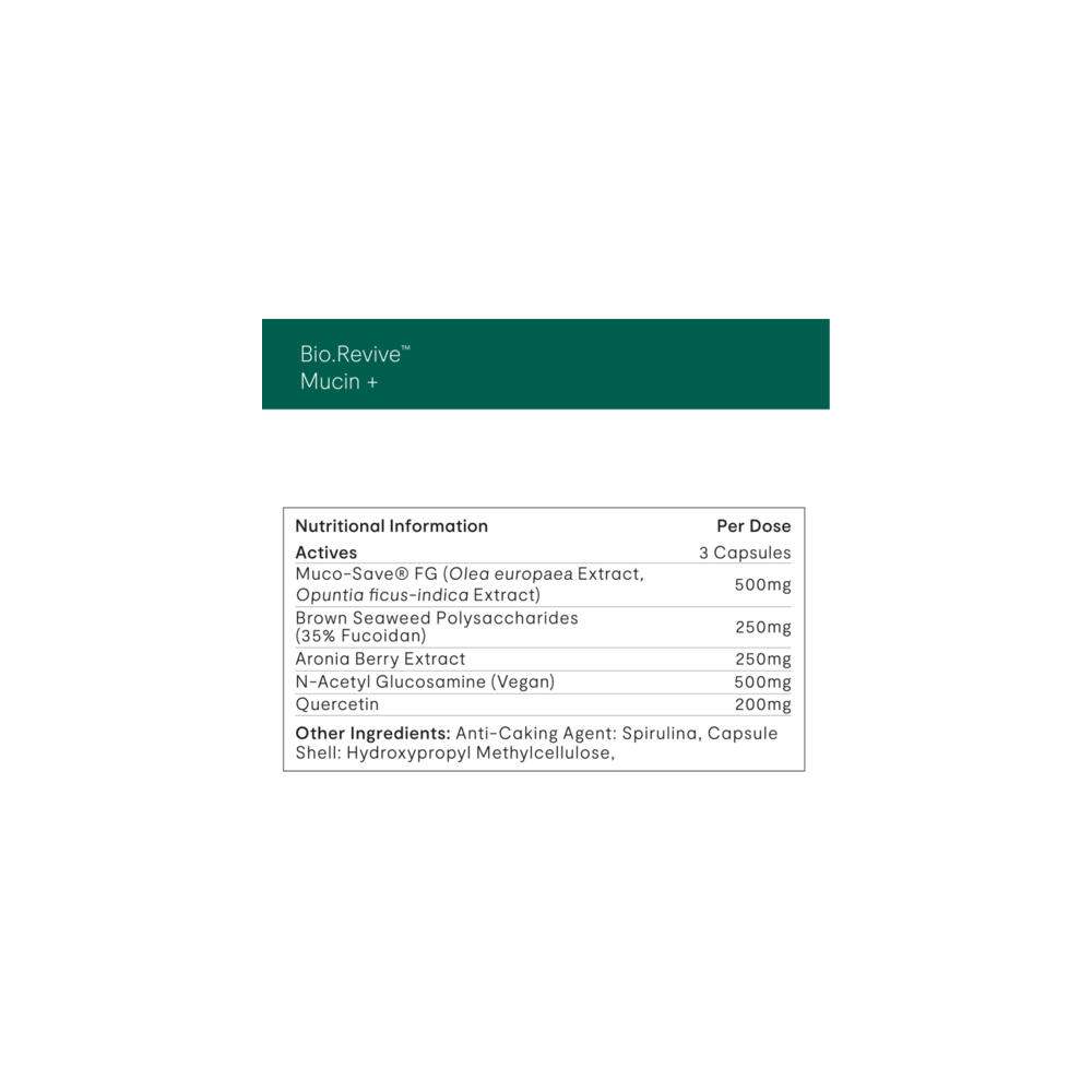 <ul><li><span style='letter-spacing: 0px;'>Bio.Revive Mucin contains Muco-Save® for active mucosal protection.</span></li><li>Formulated to support sensitive mucosa with mucilaginous herbs.</li><li>Enhanced with brown seaweed for additional benefits.</li></ul>