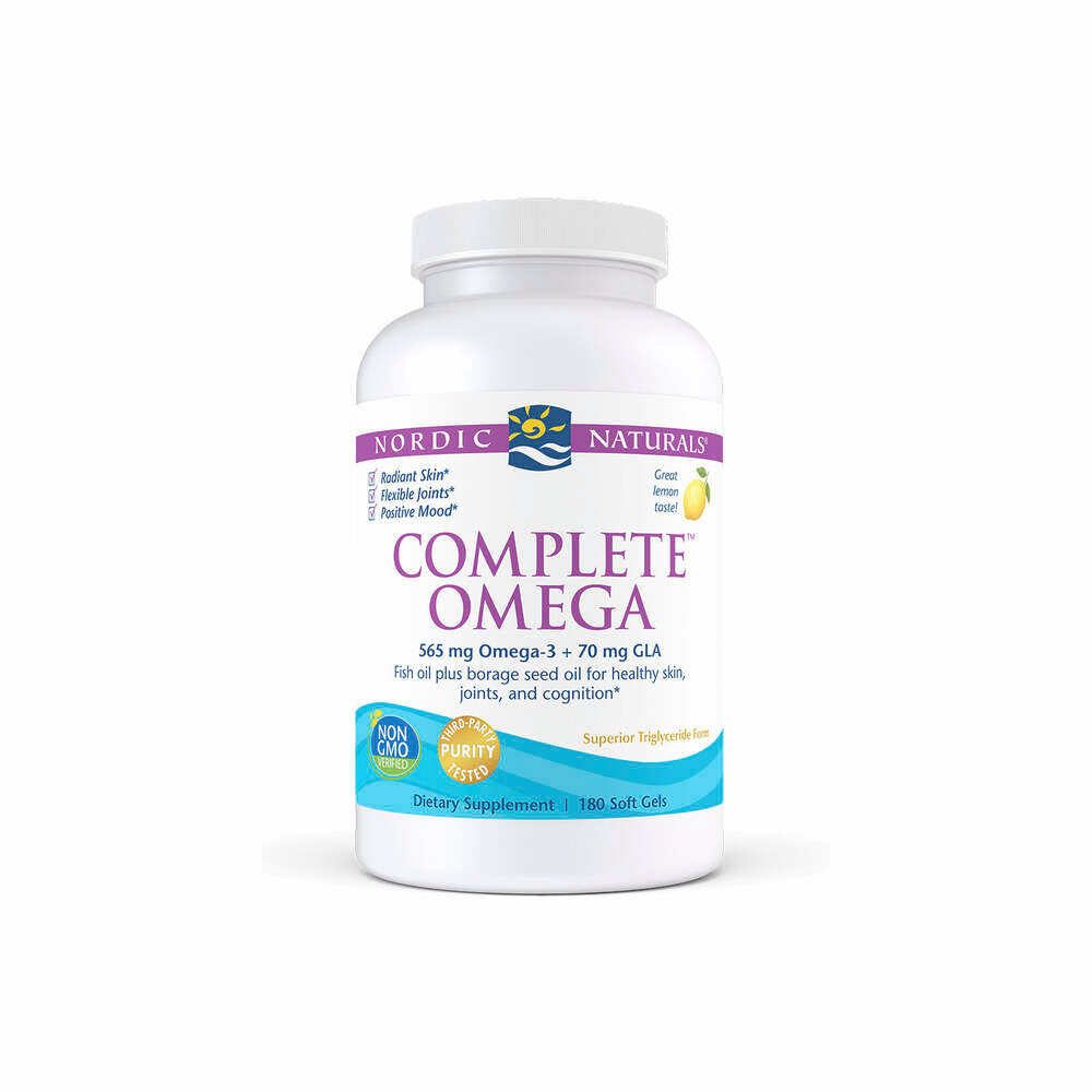 <p data-mce-fragment="1">Complete Omega™ blends omega-3 EPA+DHA with GLA and oleic acid from borage oil in convenient lemon-flavoured softgel.</p><p data-mce-fragment="1"><br></p><p data-mce-fragment="1">This formula offers the perfect balanced combination of omegas 3, 6 and 9, with pure, fresh omega 3 fish oil combined with sustainably sourced borage oil. Made exclusively from 100% wild-caught anchovies and sardines, in the molecular triglyceride form, the form naturally found in fish, so your body can absorb it more easily.</p><p data-mce-fragment="1"><br></p><p data-mce-fragment="1">Suggested use: 2 softgels per day.</p>