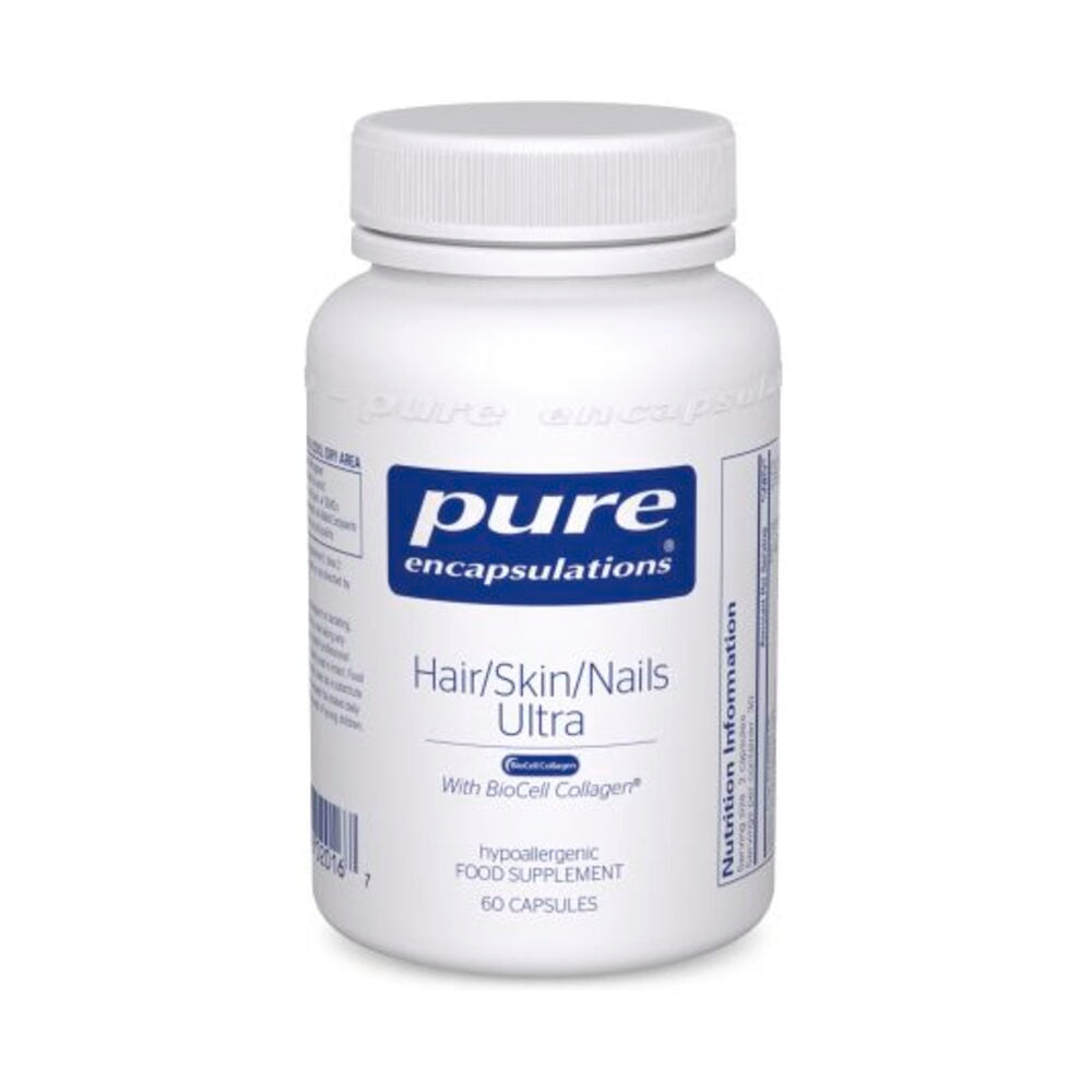 <p>Hair/Skin/Nails Ultra from Pure Encapsulation contains Metafolin® L-5-MTHF, the predominant,</p><p>naturally occurring form of folate in food. It also, contains BioCell Collagen®, a patented,</p><p>hydrolyzed and denatured low molecular weight collagen. </p><p><br></p><p>As a dietary supplement, take 2 capsules daily, with a meal.</p>