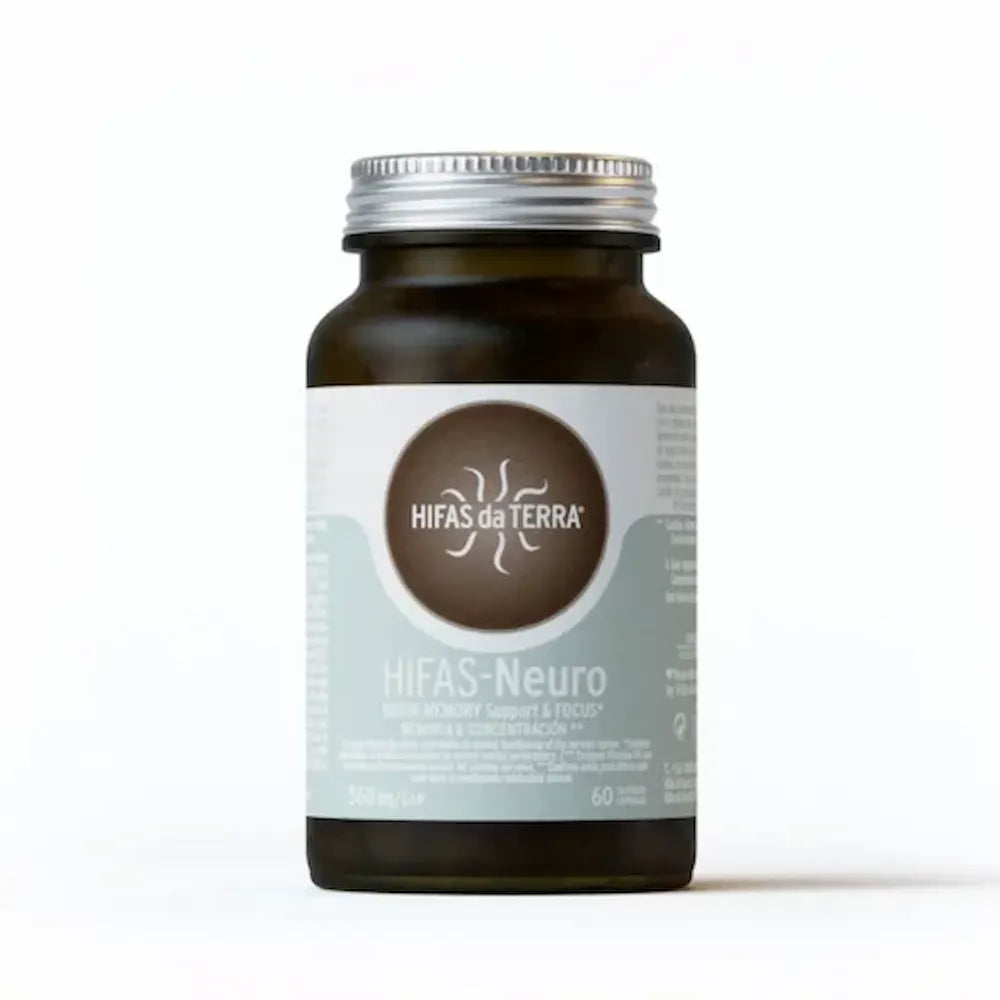 <div><b>Hifas-NEURO</b>&nbsp;is a food supplement formulated with the medicinal mushrooms Hericium erinaceus, Inonotus obliquus and plant extracts like Bacopa monnieri, Ginkgo biloba, phosphatidylserine and the adaptogen Rhodiola rosea. These ingredients have been carefully selected for their benefits for the cognitive sphere.&nbsp;</div><ul><li>Golden root helps maintain normal function of the circulatory system, in this way providing cells with oxygen and nutrients<span style="white-space:pre"> </span>Health claim ID 2376 pending European approval.</li><li>Golden root normalizes intestinal tract function and is for the gastrointestinal tract health<span style="white-space:pre"> </span>Health claim ID 2484 pending European approval.</li><li>Golden root helps organism to adapt for emotional stress, physical effort, helps to stimulate the nervous system, has beneficial effect in fatigue and headaches induced by stress, beneficial for the sleep difficulties, poor appetite, decline in work performance, helps to stimulate perception, improve state of mind, helps to support potency, has beneficial effect on cardiovascular system because it helps to protect against stress and hypertension<span style="white-space:pre"> </span>Health claim ID 2659 pending European approval.</li><li>Golden root gives endurance for sports performances, strength and condition, is a plant antioxidant for cell protection and an adaptogen that protects during physical stress.<span style="white-space:pre"> </span>Health claim ID 2829 pending European approval.</li><li>Golden root contributes to normal blood circulation, which is associated with brain performance, reactivity, optimal mental and cognitive activity<span style="white-space:pre"> </span>Health claim ID 3877 pending European approval.</li><li>Bacopa monnieri might have a positive effect on brain system, long-term memory enhancing effects, increase concentration, intelligence, prevent stress and healthy dreams.<span style="white-space:pre"> </span>Health claim ID 2650 pending European approval.</li><li>Bacopa monnieri supports learning ability, cognitive function, concentration, memory ( which is especially important in elderly people due to the physiology of the aging process), improves cognitive and memory skills<span style="white-space:pre"> </span>Health claim ID 3268 pending European approval.</li><li>Bacopa monnieri helps the peripherical blood micro circulation and contributes to normal blood circulation, which is associated with brain performance<span style="white-space:pre"> </span>Health claim ID 3986 pending European approval.</li><li>Ginkgo biloba can help the maintenance of the proper brain performance in elderly people<span style="white-space:pre"> </span>Health claim ID 2369 pending European approval.</li><li>Ginkgo biloba contributes to good nerve balance &amp; promotes good mental balance<span style="white-space:pre"> </span>Health claim ID 2546 pending European approval.</li><li>Ginkgo biloba contributes to good hearing and vision &amp; promotes the peripheral circulation, which is especially useful for the eyes and the ears.<span style="white-space:pre"> </span>Health claim ID 2807 pending European approval.</li><li>Ginkgo biloba has scientifically proven to help maintaining mental well-being (e.g by maintaining focus on the work memory in the short term and during moments of increased stress) &amp;&nbsp; maintaining good cognitive functions, to contribute to a normal blood circulation which is associated with brain performance and reactivity<span style="white-space:pre"> </span>Health claim ID 3364pending European approval.</li><li>Ginkgo biloba helps to maintain memory with age decline and to preserve cognitive function &amp;enhancement of cognitive performance<span style="white-space:pre"> </span>Health claim ID 3768 pending European approval.</li><li>Ginkgo biloba is for symptomatic treatment of mild to moderate cerebrovascular insufficiency<span style="white-space:pre"> </span>Health claim ID 4304 pending European approval.</li><li>Ginkgo biloba help maintaining good cognitive functions, to contribute to a normal blood circulation which is associated with brain performance and reactivity &amp; retain and recall facts, to maintain clear thinking and to maintain day-to-day focus.<span style="white-space:pre"> </span>Health claim ID 2261 pending European approval.</li><li>Phosphatidylserine nutrients contributing to the cerebral methabolic process, helping the mental and cognitive activity.<span style="white-space:pre"> </span>Health claim ID 3629 pending European approval.</li><li>Pantothenic acid contributes to normal synthesis and metabolism of steroid hormones, vitamin D and some neurotransmitters</li><li>Vitamin B6 contributes to normal homocysteine,&nbsp; energy-yielding , protein and glycogen metabolism</li><li>Vitamin B6 contributes to normal psychological function</li><li>Vitamin B6 contributes to normal red blood cell formation</li><li>Vitamin B6 contributes to the normal function of the immune &amp; nervous system</li><li>Vitamin B6 contributes to the reduction of tiredness and fatigue</li><li>Vitamin B6 contributes to the regulation of hormonal activity</li><li>Vitamin B6 contributes to normal cysteine synthesis</li><li>Vitamin B12 contributes to normal functioning of the nervous &amp; immune system</li><li>Vitamin B12 contributes to normal psychological function</li><li>Vitamin B12 contributes to normal energy-yielding &amp; homocysteine metabolism</li><li>Vitamin B12 contributes to normal red blood cell formation</li><li>Vitamin B12 contributes to the reduction of tiredness and fatigue</li><li>Vitamin B12 has a role in the process of cell division</li></ul><div><br></div><div>Suitable for people with allergies and lactose intolerance, vegetarians and vegans. Hifas da Terra products are free from heavy metals. and pesticides.</div><div><br></div><b>*Disclaimer: </b>Our supplements are trusted and selected by practitioners. Le