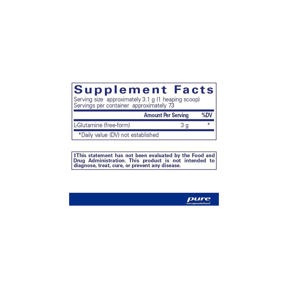 <p data-mce-fragment="1">L-Glutamine powder by Pure Encapsulations provides a source of glutamine, in a highly soluble, pleasant tasting, additive-free powder. L-Glutamine powder provides 3g of glutamine in each scoop.</p><p data-mce-fragment="1"><br></p><p data-mce-fragment="1">Suggested use is 1 heaped scoop, 2-3 times daily.</p>