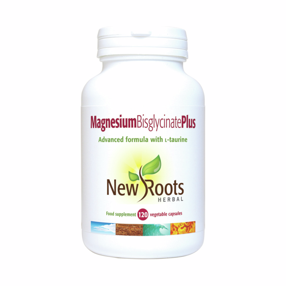 <p><span data-mce-fragment="1">New Roots Herbal’s Magnesium Bisglycinate Plus delivers magnesium as an amino-acid chelate to maximize intestinal absorption and reduce upset stomach.</span></p><p style="color: rgb(27, 12, 49); font-family: noto-sans, "Noto Sans", Helvetica, Arial, sans-serif;">The chelated form (bound to two glycine molecules) of magnesium in New Roots Herbal’s Magnesium Bisglycinate Plus has proven to be the most bioavailable form of this micronutrient, with rates of absorption in excess of 200% higher than other forms such as magnesium chloride.</p><p style="color: rgb(27, 12, 49); font-family: noto-sans, "Noto Sans", Helvetica, Arial, sans-serif;">Each capsule of New Roots Herbal’s Magnesium Bisglycinate Plus contains 150 mg of magnesium in its elemental form. The formula includes an additional 30 mg of the amino acid ʟ-taurine to improve the assimilation of magnesium at the cellular level. Supplementation with New Roots Herbal’s Magnesium Bisglycinate Plus can help meet the recommended daily allowance for adults of 300 mg of elemental magnesium.</p><p style="color: rgb(27, 12, 49); font-family: noto-sans, "Noto Sans", Helvetica, Arial, sans-serif;"><span data-mce-fragment="1"></span></p><p><span data-mce-fragment="1"></span></p><p style="color: rgb(27, 12, 49); font-family: noto-sans, "Noto Sans", Helvetica, Arial, sans-serif;">Magnesium is among the most important minerals essential to our wellbeing. It participates in more than 300 enzymatic reactions that affect all aspects of metabolic function.</p><p><span data-mce-fragment="1"><br></span></p><ul><li>Magnesium contributes to a reduction of tiredness and fatigue</li><li>Magnesium contributes to normal muscle function</li><li>Magnesium has a role in the process of cell division</li><li>Magnesium contributes to normal psychological function</li><li>Magnesium contributes to normal protein synthesis</li><li>Magnesium contributes to the maintenance of normal bones</li><li>Magnesium contributes to the maintenance of normal teeth</li><li>Magnesium contributes to normal energy-yielding metabolism</li><li>Magnesium contributes to electrolyte balance</li><li>Magnesium contributes to normal functioning of the nervous system</li></ul><p><br></p><b>*Disclaimer: </b>Our supplements are trusted and selected by practitioners. Legislation limits the information we can share. For complete details, please refer to a medical library.