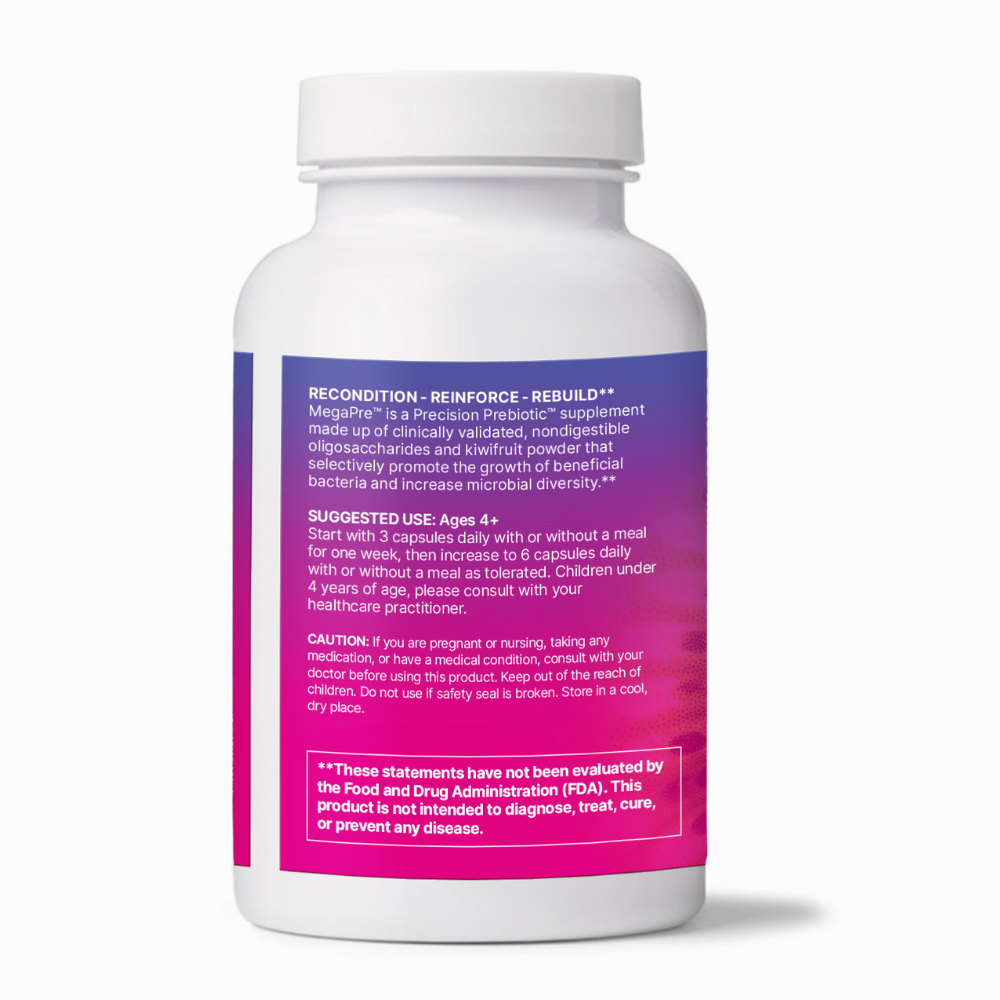 <p style="color: rgb(27, 12, 49); font-family: noto-sans, "Noto Sans", Helvetica, Arial, sans-serif;"><span style="color: rgb(0, 0, 0); font-family: sans-serif; letter-spacing: 0px;">This dairy-free MegaPre™ option is the same Precision Prebiotic™ supplement you know and love</span></p><p style="color: rgb(27, 12, 49); font-family: noto-sans, "Noto Sans", Helvetica, Arial, sans-serif;"><span style="color: rgb(0, 0, 0); font-family: sans-serif; letter-spacing: 0px;"><br></span>MegaPre™ DF contains oligosaccharides (medium-chain carbohydrates) that can't be digested by humans but instead target keystone species known as secondary degraders.</p><p style="color: rgb(27, 12, 49); font-family: noto-sans, "Noto Sans", Helvetica, Arial, sans-serif;"><br></p><p style="color: rgb(27, 12, 49); font-family: noto-sans, "Noto Sans", Helvetica, Arial, sans-serif;">Primary degraders feed on bulkier fibers (like cellulose, resistant starches, and inulin) and later convert them into products like oligosaccharides.</p><p style="color: rgb(27, 12, 49); font-family: noto-sans, "Noto Sans", Helvetica, Arial, sans-serif;"><br></p><p style="color: rgb(27, 12, 49); font-family: noto-sans, "Noto Sans", Helvetica, Arial, sans-serif;"><span style="letter-spacing: 0px;">The oligosaccharides in MegaPre™ have been derived from organic green and gold kiwifruit and non-GMO corn cob</span></p><p><br></p><p><b>*Disclaimer: </b>Our supplements are trusted and selected by practitioners. Legislation limits the information we can share. For complete details, please refer to a medical library.</p>
