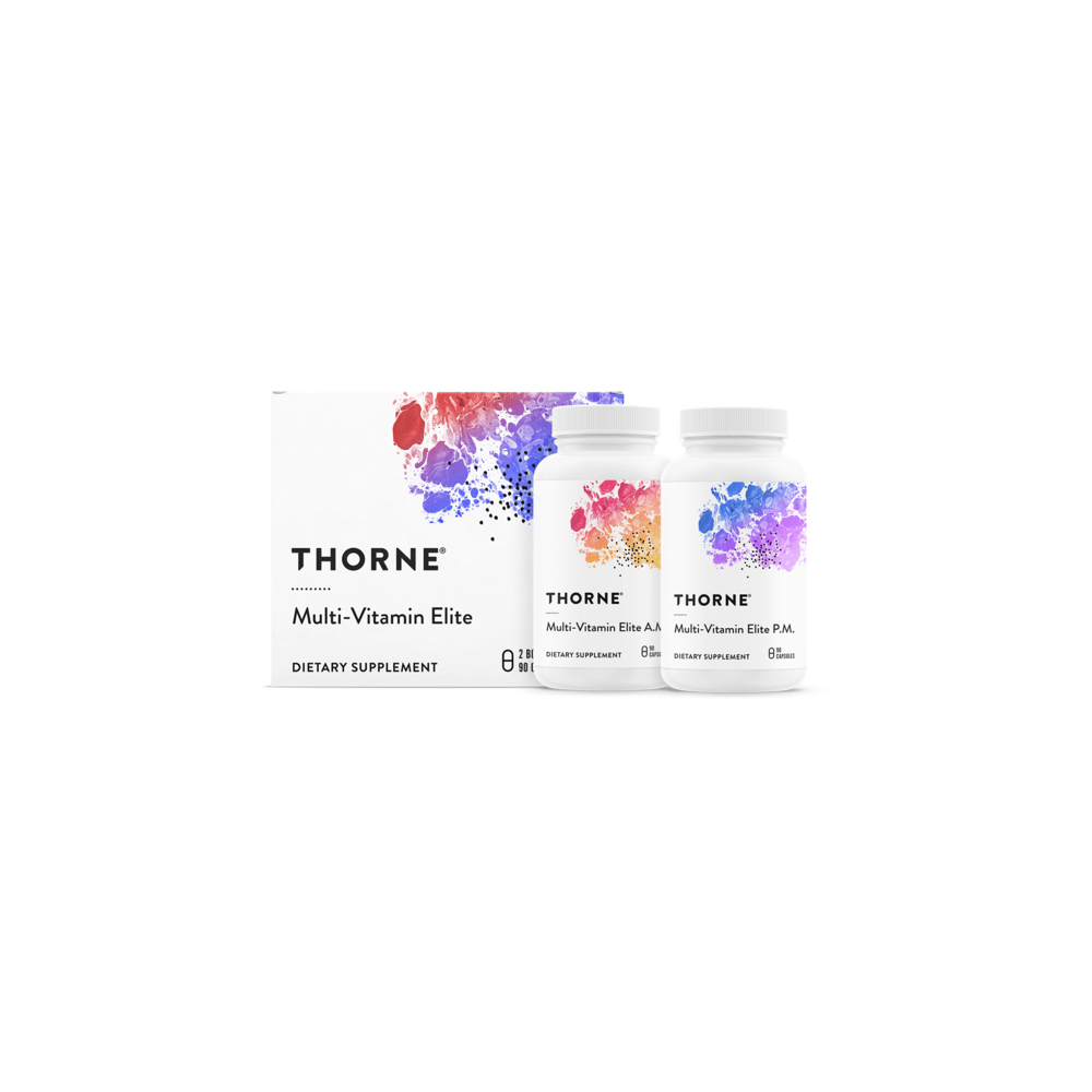 <h4 class="product title is-4" data-mce-fragment="1">Two innovative formulas to support your body from morning to night.</h4><h4 class="product title is-4" data-mce-fragment="1"><p data-mce-fragment="1" style="color: rgb(27, 12, 49); font-family: noto-sans, &quot;Noto Sans&quot;, Helvetica, Arial, sans-serif; font-weight: 400;">Thorne's Multi-Vitamin Elite provides active individuals who have high-performance nutritional regimens with essential nutrients in two complementary formulas.</p><p data-mce-fragment="1" style="color: rgb(27, 12, 49); font-family: noto-sans, &quot;Noto Sans&quot;, Helvetica, Arial, sans-serif; font-weight: 400;">Both formulas contain a full complement of vitamins and minerals in their most absorbable forms. Vitamin D contributes to the maintenance of normal bones and the immune system. B vitamins contribute to normal function of the immune, blood vessel, and nerveous system. Vitamins K1 and K2 contributes to the maintenance of normal bones and normal blood clotting.</p><p data-mce-fragment="1" style="color: rgb(27, 12, 49); font-family: noto-sans, &quot;Noto Sans&quot;, Helvetica, Arial, sans-serif; font-weight: 400;"><br></p><p data-mce-fragment="1" style="color: rgb(27, 12, 49); font-family: noto-sans, &quot;Noto Sans&quot;, Helvetica, Arial, sans-serif; font-weight: 400;">AM Formula:&nbsp;</p><p data-mce-fragment="1" style="color: rgb(27, 12, 49); font-family: noto-sans, &quot;Noto Sans&quot;, Helvetica, Arial, sans-serif; font-weight: 400;"><span style="letter-spacing: 0px;">• Contains two specially formulated phytosomes: Meriva® and green tea</span><br></p><p data-mce-fragment="1" style="color: rgb(27, 12, 49); font-family: noto-sans, &quot;Noto Sans&quot;, Helvetica, Arial, sans-serif; font-weight: 400;"><br></p><p data-mce-fragment="1" style="color: rgb(27, 12, 49); font-family: noto-sans, &quot;Noto Sans&quot;, Helvetica, Arial, sans-serif; font-weight: 400;"><span style="letter-spacing: 0px;">PM Formula:&nbsp;</span><br></p><p data-mce-fragment="1" style="color: rgb(27, 12, 49); font-family: noto-sans, &quot;Noto Sans&quot;, Helvetica, Arial, sans-serif; font-weight: 400;"><span style="letter-spacing: 0px;">• Contains Relora®, a proprietary blend of Magnolia and Phellodendron extracts</span><br></p><p data-mce-fragment="1" style="color: rgb(27, 12, 49); font-family: noto-sans, &quot;Noto Sans&quot;, Helvetica, Arial, sans-serif; font-weight: 400;"><br></p><p data-mce-fragment="1" style="color: rgb(27, 12, 49); font-family: noto-sans, &quot;Noto Sans&quot;, Helvetica, Arial, sans-serif; font-weight: 400;"><span style="letter-spacing: 0px;">More information about this product</span><br></p><p data-mce-fragment="1" style="color: rgb(27, 12, 49); font-family: noto-sans, &quot;Noto Sans&quot;, Helvetica, Arial, sans-serif; font-weight: 400;"><br></p><p data-mce-fragment="1" style="color: rgb(27, 12, 49); font-family: noto-sans, &quot;Noto Sans&quot;, Helvetica, Arial, sans-serif; font-weight: 400;">Unfortunately, due to legislation concerning supplements, we are not allowed to provide (complete) information about this product. For more information we refer you to a library of medicine</p></h4>