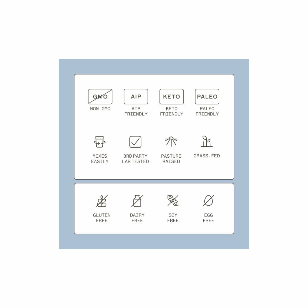 <p><strong data-start="1158" data-end="1190"></strong></p><p data-start="196" data-end="327">Whether you’re looking to increase your daily protein intake or want to support your gut health, this delicious blend can help you.</p><p data-start="329" data-end="426">Grass-fed, collagen-based protein with a full amino acid profile</p><ul style="color: rgb(27, 12, 49); font-family: noto-sans, "Noto Sans", Helvetica, Arial, sans-serif;"><li><strong data-start="193" data-end="218">Clean & AIP-Compliant</strong> – One of the few <strong data-start="236" data-end="268">AIP-friendly protein powders</strong>, free from <strong data-start="280" data-end="331">gluten, dairy, sugar, grains, corn, and legumes</strong>, making it ideal for autoimmune and anti-inflammatory diets.</li><li><strong data-start="402" data-end="437" style="letter-spacing: 0px;">High-Quality Protein & Collagen</strong><span style="letter-spacing: 0px;"> – Provides </span><strong data-start="449" data-end="505" style="letter-spacing: 0px;">grass-fed, pasture-raised protein per serving</strong><span style="letter-spacing: 0px;">, hydrolyzed for </span><strong data-start="522" data-end="561" style="letter-spacing: 0px;">enhanced absorption and easy mixing</strong><span style="letter-spacing: 0px;">, and rich in </span><strong data-start="575" data-end="596" style="letter-spacing: 0px;">collagen peptides.</strong></li><li><span style="letter-spacing: 0px;"><b>Packed with </b></span><strong data-start="681" data-end="716" style="letter-spacing: 0px;">Glutamine, Glycine, and Proline.</strong></li><li><strong data-start="796" data-end="838" style="letter-spacing: 0px;">Bone Broth Benefits Without the Hassle</strong><span style="letter-spacing: 0px;"> – Delivers the </span><strong data-start="854" data-end="892" style="letter-spacing: 0px;">nutritional benefits of bone broth</strong><span style="letter-spacing: 0px;"> in a convenient powder form—no crockpot required.</span></li></ul><p data-start="621" data-end="790"><strong data-start="621" data-end="637">Who It’s For</strong><br data-start="637" data-end="640">Paleo Protein is essential for those who are invested in supporting their gut health with a formula that enhances absorption, easily and effectively.</p><p data-start="792" data-end="973"><br></p><p data-start="975" data-end="1404"><strong data-start="986" data-end="1020">What is Paleo Protein made of?</strong><br data-start="1020" data-end="1023">Paleo Protein is made from hydrolyzed bovine collagen that comes from happy, pasture-raised cows that graze on fresh green fields in the sunshine. These animals are raised with love and care and are never given unnecessary drugs such as antibiotics, arsenic-based growth promoters, or hormones. They are grass-fed and never fed GMOs, such as genetically modified corn and soy meal.</p><p data-start="975" data-end="1404"><br></p><p data-start="1406" data-end="1778"><strong data-start="1406" data-end="1455">What time of day should I take Paleo Protein?</strong><br data-start="1455" data-end="1458">Paleo Protein is perfect any time of the day. While Dr. Myers likes it in her morning smoothies, you can enjoy it at all times of the day. Whether you’re mixing it into your morning coffee, into shakes for dessert, or adding it to soups and stews for an extra collagen kick, you’ll find that it’s great around the clock.</p><p data-start="1406" data-end="1778"><br></p><p data-start="1780" data-end="2281"><strong data-start="1780" data-end="1862">Is Paleo Protein safe for pregnant women, breastfeeding mothers, and children?</strong><br data-start="1862" data-end="1865">While many moms and dads tell me they give Paleo Protein to their kids, I always recommend speaking with your child’s pediatrician or nutritionist if you have concerns about any of the ingredients or adjusting the dosing for them. And, as always, I recommend reaching out to your physician, midwife, or other qualified healthcare practitioner if you have any concerns before using it while pregnant or breastfeeding.</p><p data-start="1780" data-end="2281"><br></p><p data-start="2283" data-end="2867"><strong data-start="2283" data-end="2320">Is Paleo Protein damaged by heat?</strong><br data-start="2320" data-end="2323">All proteins are damaged by high heat to some extent. Proteins are long chains of amino acids bound together. High heat can potentially fold and warp the amino acid chains into new shapes and structures called amines that may be unusable by the body, or even harmful. This is why you should avoid charring or overcooking meat. The proteins and peptides in my <strong data-start="2682" data-end="2710">Paleo Protein Unflavored</strong> are quite stable at moderately high temps, so adding it to a hot cup of tea or coffee, or baking it at low temps (below 300F) will not denature it too much.</p><p data-start="2283" data-end="2867"><br></p><p data-start="2869" data-end="3560"><strong data-start="2869" data-end="2927">Can I take Paleo Protein if I’m allergic to tree nuts?</strong><br data-start="2927" data-end="2930">Paleo Protein contains MCT oil derived from coconuts. Scientifically speaking, coconuts are not tree nuts—they are in fact fruits classified as a “drupe.” Other drupes include palm fruit, peaches, berries, plums, and apricots. However, because the FDA has lumped coconuts in a group with other tree nuts for labeling purposes, we are required to list them as a potential allergen. In fact, true coconut allergy is actually extremely rare with only a few cases reported in the medical literature. <b>If you have a diagnosed tree nut allergy, please speak with your healthcare provider before consuming any products containing coconut</b>.</p><p data-start="2869" data-end="3560"><br></p><p data-start="3562" data-end="3930"><strong data-start="3562" data-end="3646">How come there are fewer scoops in my pouch than the number listed on the label?</strong><br data-start="3646" data-end="3649">The listed am