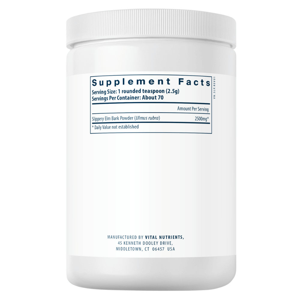 <p>Slippery Elm Bark Powder by Vital Nutrients provides slippery elm in powder form. Slippery elm is derived from the bark of an elm species native to Eastern North America. It is rich in mucilage.</p><p><br></p><p>Suggested use is 1 rounded teaspoon per day.</p>