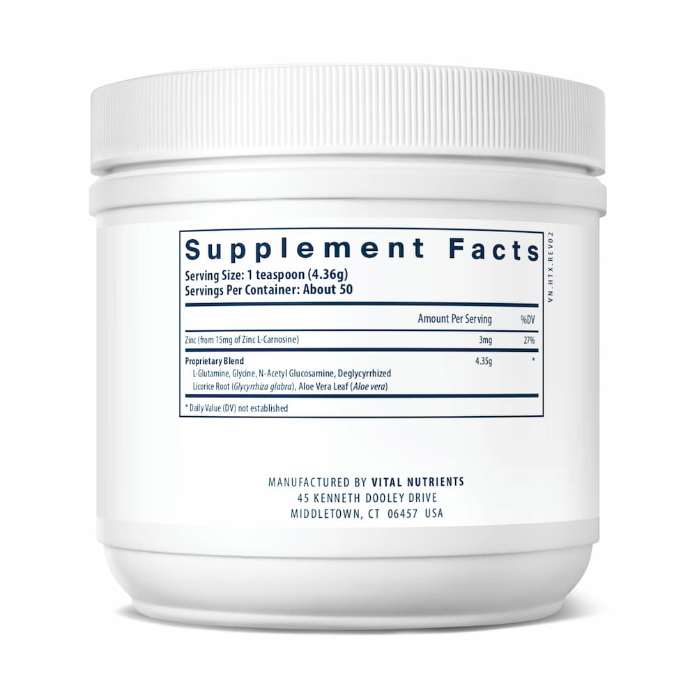 <ul> <li><li>Powder blend with DGL, aloe vera, and other supportive herbs.</li><li>Fortified with L-glutamine, N-acetyl-glucosamine, and zinc.</li><li>Easy-to-use powder for convenient daily supplementation.</li></li></ul>